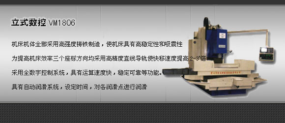 立式數控VM1806銑床是我公司根據制造業的市場需求,自行研制和開發的新型數控立式銑床,它采用模塊式設計,除具備立式銑床的功能外可加側銑頭,實現臥式鏜銑功能,還可加裝刀庫使加工范圍和功能進一步擴大,適合于航空、航天工業復雜結構件、試驗件的型面加工,也適合汽車模具和零備件和制造。